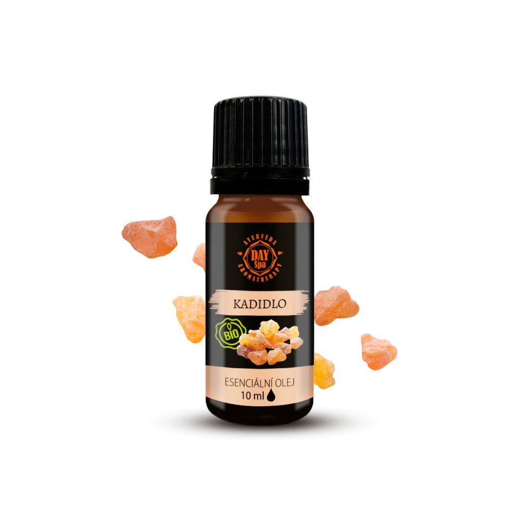 Kadidlo v podobě 100% čistého BIO esenciálního oleje má typickou vůni pryskyřice s dřevitými tóny. Uzemňuje, čistí prostor a je typickým vykuřovadlem při meditacích a rituálech. Kontraindikace a indikace Olej je vhodný pro děti od 3 let a těhotné ženy po prvním trimestru, není však doporučen při kojení. Můžete jej používat i pokud máte doma psa. Esenciální olej z kadidla by se neměl používat v domácnosti s kočkami. Zoxidovaný kadidlový olej může způsobit vyšší senzitivitu pokožky, dbejte proto na jeho správné skladování. Nepoužívá se u lidí s hormonálně závislým onkologickým onemocněním, u astmatiků a epileptiků. Složení: esenciální olej z pryskyřice kadidlovníku (Boswellia carterii). Biochemický profil: Alpha - thujene >75 %, Beta-phellandrene 4 – 8 %, Delta-3-carene 1,5 – 5 % Upozornění: Uchovávejte mimo dosah dětí. Nepoužívejte neředěné na pokožku. V koncentrovaném stavu dráždí oči, dýchací cesty a pokožku. Skladování: Skladujte v suchu, mimo dosah slunečního záření. Objem: 10 ml Země původu: SomálskoDoplňkové parametry
