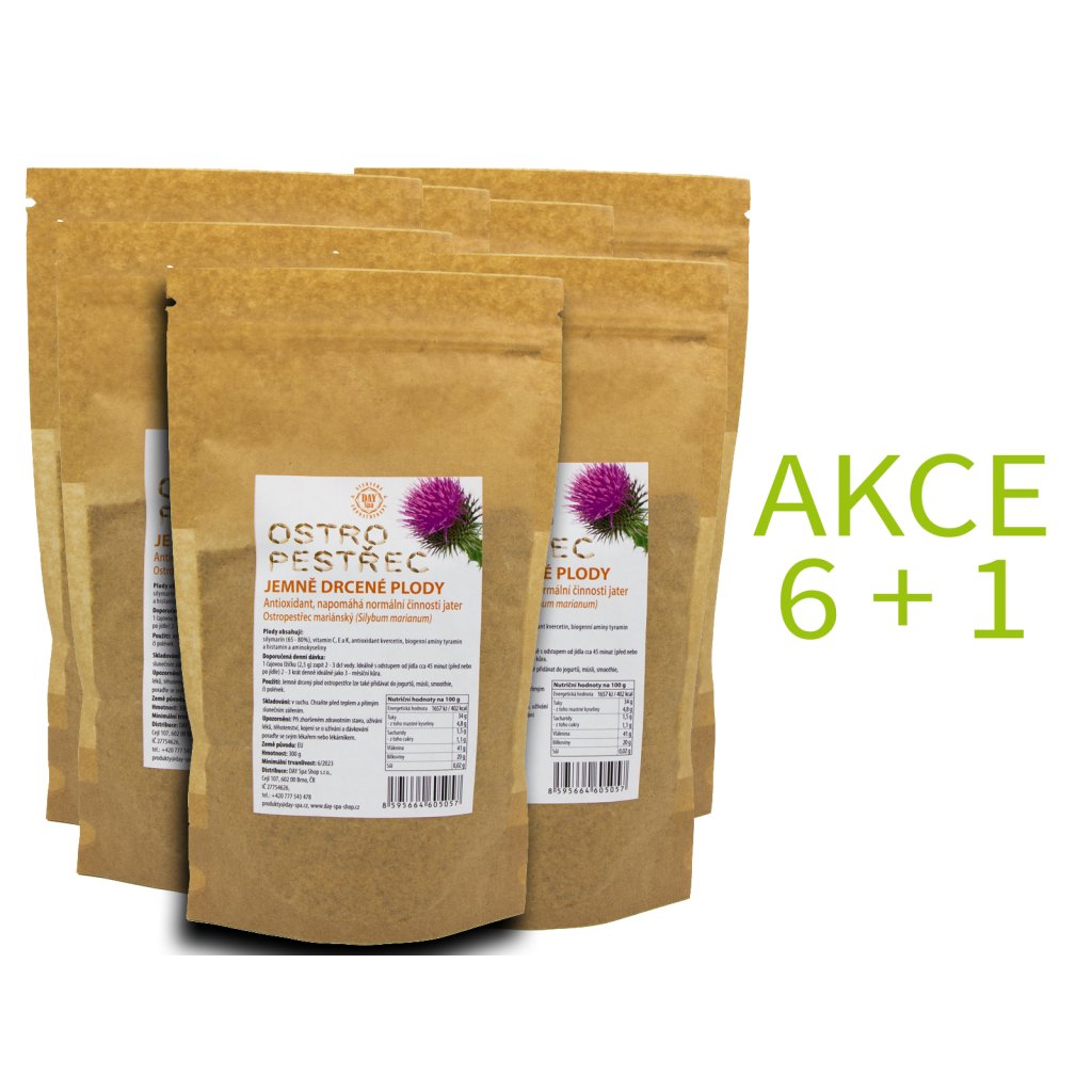 Jaká představuje ostropestřec rizikaObecně je považován za bezpečný, přesto je více než vhodné konzultovat s lékařem jeho užívání, a to především v případě, že užíváte nějaké léky nebo máte zdravotní problémy. Ostropestřec mariánský totiž může mít vliv na léky a jejich zpracování v těle. Pozor by si dát měly také těhotné a kojící ženy. Nezapomínejte také, že se jedná o podpůrnou bylinu a nelze jím nahradit klasickou léčbu předepsanou lékaři.Doporučené dávkování: 1 čajovou lžičku (2,5 g) zapít 2 - 3 dcl vody. Ideálně s odstupem od jídla cca 45 minut (před nebo po jídle). Užívejte 2 - 3krát denně ideálně jako 3měsíční kúru.Použití: Jemně drcený plod ostropestřce lze také přidat do jogurtu, smoothie, kaše, müsli či polévek.Složení: ostropestřec mariánský (Silybum marianum)Upozornění: Při zhoršeném zdravotním stavu, užívání léků, těhotenství, kojení se o užívání a dávkování poraďte se svým lékařem nebo lékárníkem.Skladování: Uchovávejte v suchu, chraňte před teplem a přímým slunečním zářením.Výživové údaje na 100 g:Energetická hodnota 1657 kj/402 kcalTuky 34 gz toho nasycené mastné kyseliny 4,8 gSacharidy 1,5 gz toho cukry 1,1 gVláknina 41 gBílkoviny 20 gSůl 0,02 gHmotnost: 300 g / 2,1 kgZemě původu: EUDoplňkové parametry