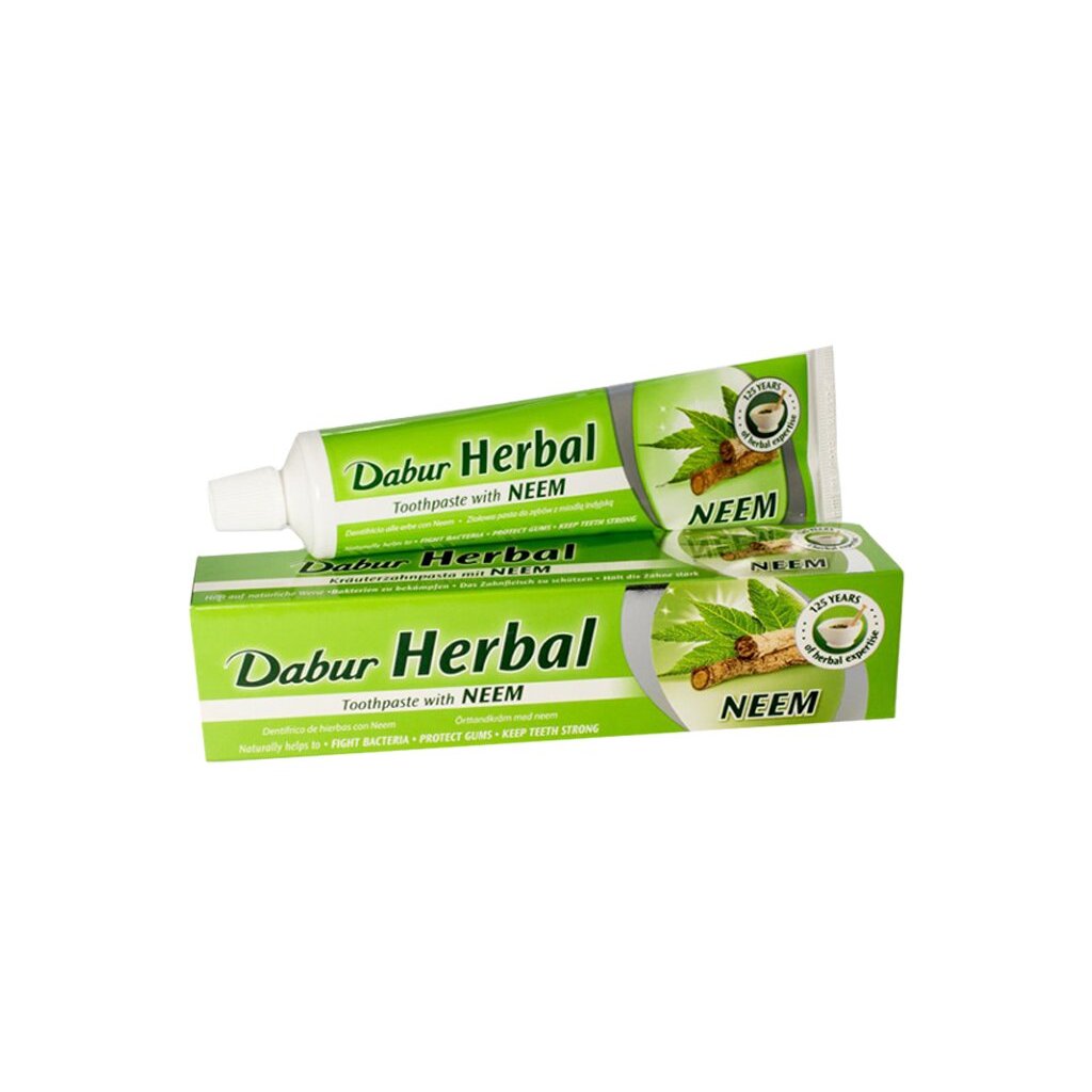 Použití: Menší množství zubní pasty naneste na vlhký kartáček a jemnými krouživými pohyby čistěte zuby po dobu 2–3 minut alespoň 2× denně. Slouží pouze k vnějšímu použití.Složení: Calcium carbonate, Aqua, Glycerin, Sodium Lauryl sulfate, Aroma (Flavour), Carrageenan, Herbal Extract (Anacyclus pyrethrum (room) extract), Acacia Arabica (stem bark) extract, Mimusops elengi (flower) extract, Symplocos racemosa (bark) extract, Eugenia cumini (fruit) extract, Azadirachta Indica (Neem) leaf extract, Sodium silicate, Sodium saccharin, Cinnamal, Eugenol, Citronellol, Limonene, CI 75810.Skladování: Uchovávejte v suchu a chladu.Objem: 100 ml Hmotnost: 155 g Země původu: IndieDoplňkové parametry