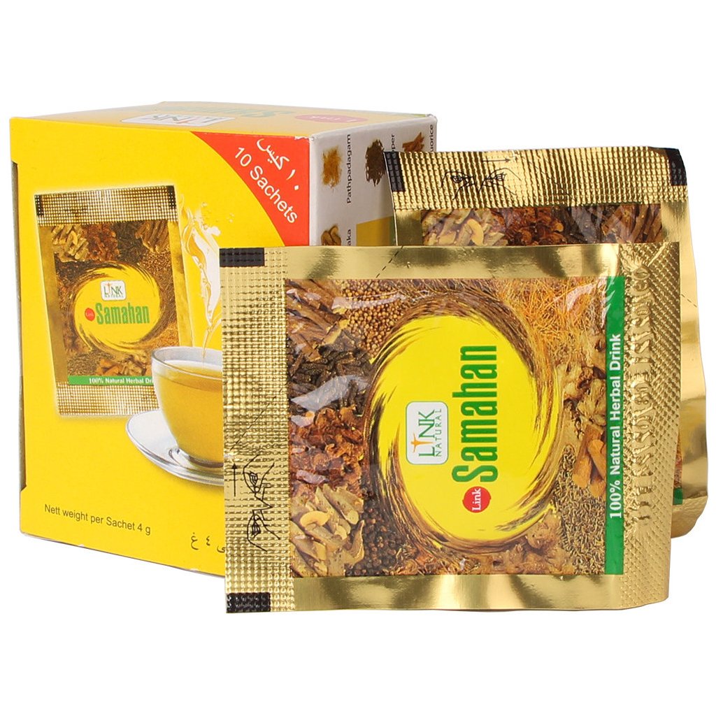 Bylinný čaj Samahan obsahuje zázvor, pepř, kmín a lékořici, které působí příznivě na dýchací cesty, posilují imunitu a celkovou odolnost organizmu. Ájurvédská medicína doporučuje pravidelné pití čaje Samahan, jako prevenci proti dýchacím onemocněním i pro udržení celkového zdraví, obzvláště v zimním období. Samahan je koncentrovaný, 100% přírodní rostlinný přípravek, kteří patří na Srí Lance mezi prastaré receptury známé jako „Peyava“. Neobsahuje žádná barviva ani konzervanty. Příprava: Pokud cítíte, že máte oslabený organizmus a potřebujete posílit imunitu, rozpusťte obsah 1 sáčku ve 100 ml horké vody nebo čaje. Chcete-li se pouze zahřát nebo se preventivně posílit, můžete 1 sáček rozpustit ve 250 ml horké vody. Optimální denní dávka jsou max. 4 sáčky. Pro děti mladší 5 let použijte polovinu sáčku. Upozornění: Nápoj není náhrada pestré stravy. Není vhodný pro malé děti, těhotné a kojící ženy. Nepřekračujte doporučené denní dávkování. TIP: Při nemoci horních i dolních dýchacích cest můžete účinek nápoje Samahan posílit také balzámem Samahan SP . Lze jej inhalovat i mazat na bolestivá místa. Skládá se. Nesměna cévnatá – kořen ( Adhatoda vasica ), galgán – oddenek ( Alpinia galanga ), kmín koptský - oddenek ( Carum copticum ), koriandr setý - semeno ( Coriandrum sativum ), kalumbské dřevo - stonek ( Coscinium fenestratum ), římský kmín - semeno ( Cuminum cyminum ), vyvinutec - celá rostlina ( Evolvulus alsinoides ), lékořice lisá - stonek ( Glycyrrhiza glabra ), Hedyotis corymbosa - celá rostlina, pepř dlouhý - plod ( Piper longum ), pepř černý - plod ( Piper nigrum ), Premna herbacea - kořen, Solanum xanthocarpum - celá rostlina, Zázvor lékařský - oddenek ( Zingiber officinale ), Premna herbacea - kořen, třtinový cukr