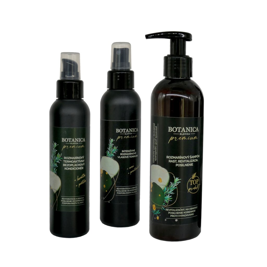 Sada 100% přírodní rozmarýnové péče o vlasy - šampón, tonikum, termoaktivní kondicionér